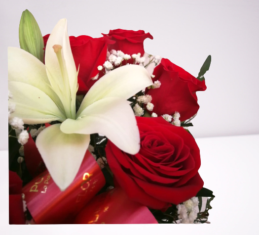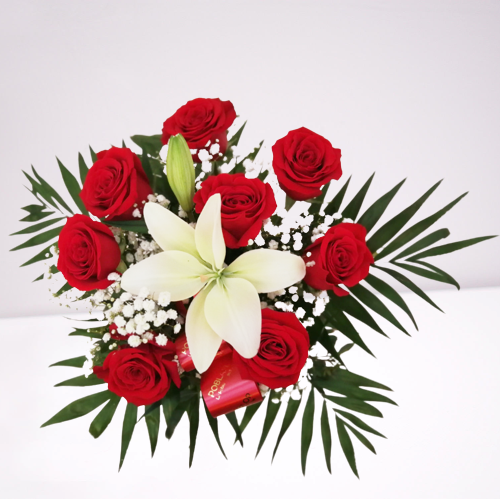 Ramo con rosas rojas y lilium.