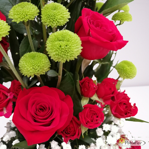 En un “Arrebato” pasional regala este precioso centro con rosas rojas que hará que esa personal especial se ruborice de placer.