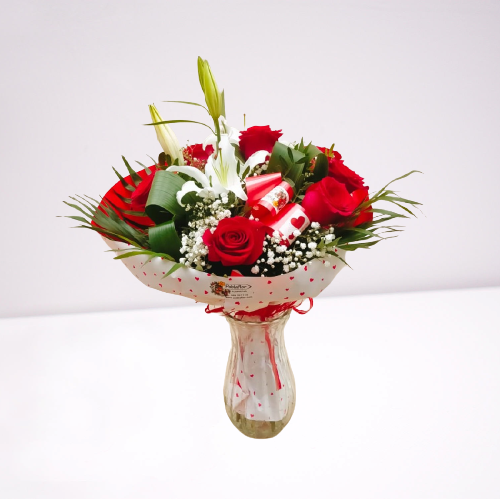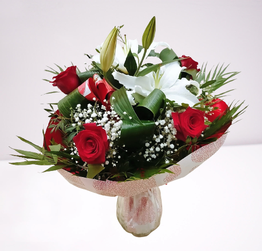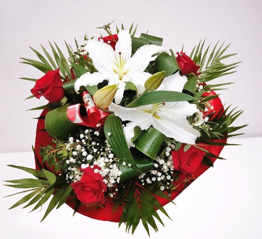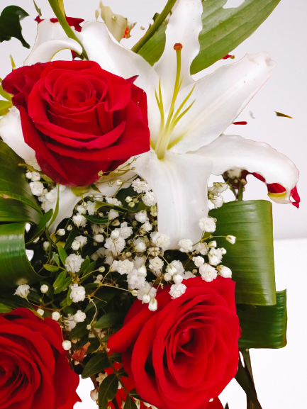 El regalo Ideal para vuestra pareja, donde las rosas rojas junto con el lilium blanco, son las protagonistas, luciendo en todo su esplendor, formando parte de vuestra historia.