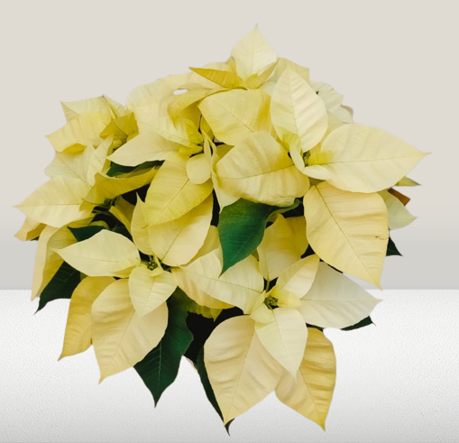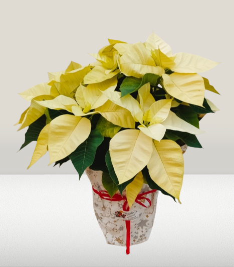 La Poinsettia en tonos amarillos, dará a tu hogar un diferente e innovador toque navideño. Envuelta en papel de regalo.