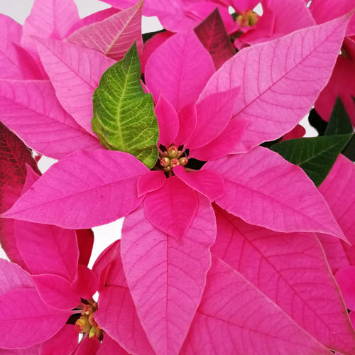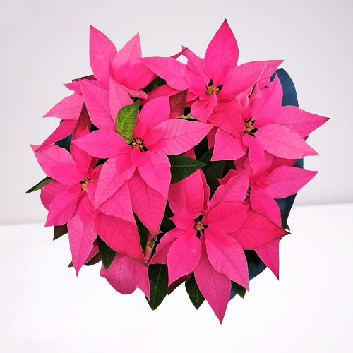 Poinsettia, planta de navidad o flor de pascua de color rosa. Envuelta de regalo.