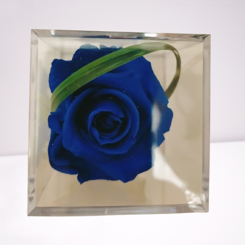 Rosa azul preservada en caja de metacrilato