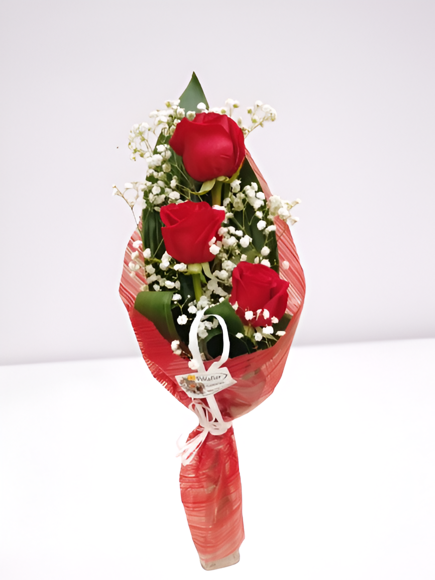 Este coqueto detalle de 3 rosas rojas, es el regalo perfecto. Dile TE QUIERO  a esa persona especial con este precioso detalle a domicilio o para presentarte de manera inesperada.  Le fascinará y quedará maravillada.